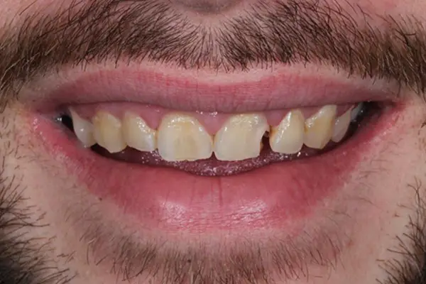 Composite veneers involve applying composite over the entire surface of the tooth. Commonly used to close spaces, mask mild crowding and for full smile makeovers.
